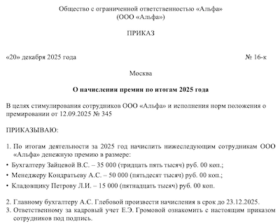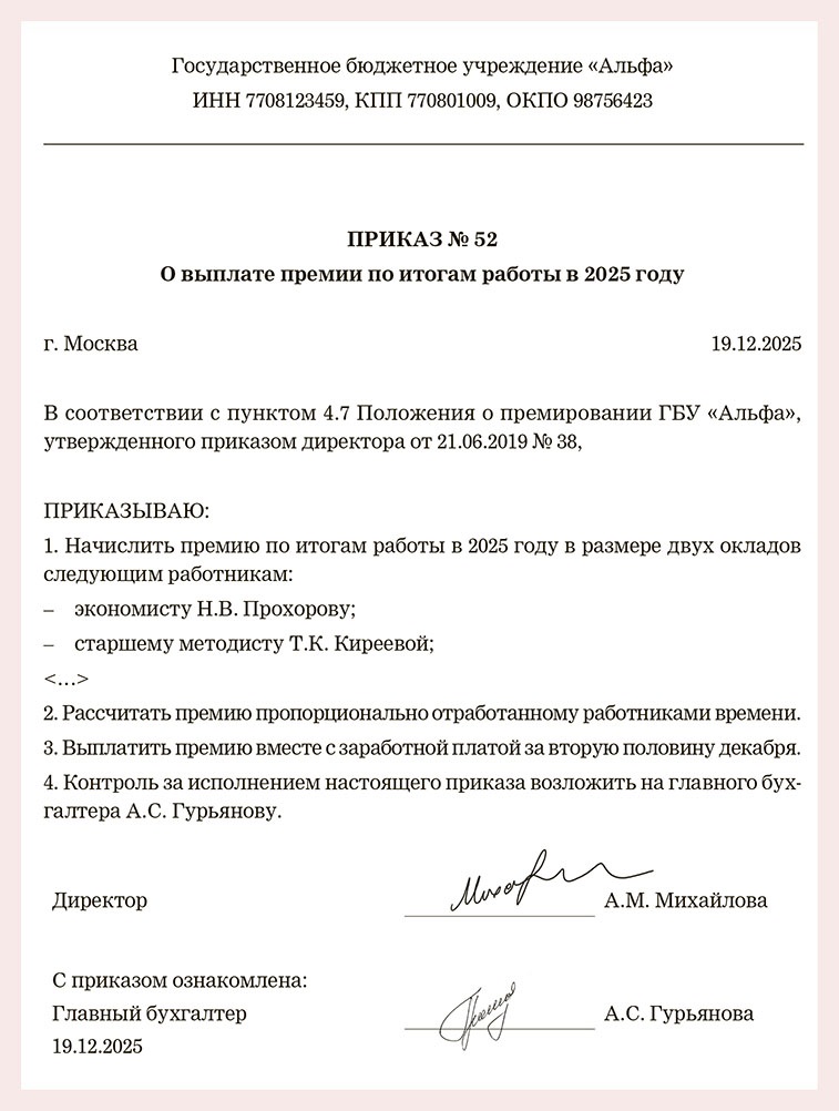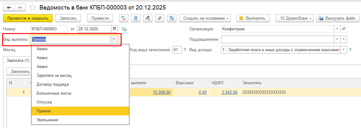 Код выплаты премии