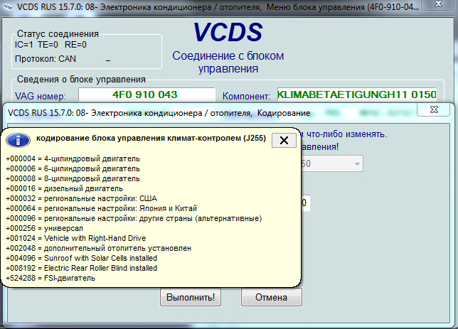 Кодировки ауди а8