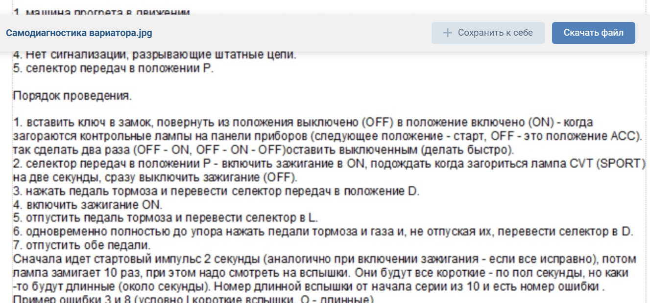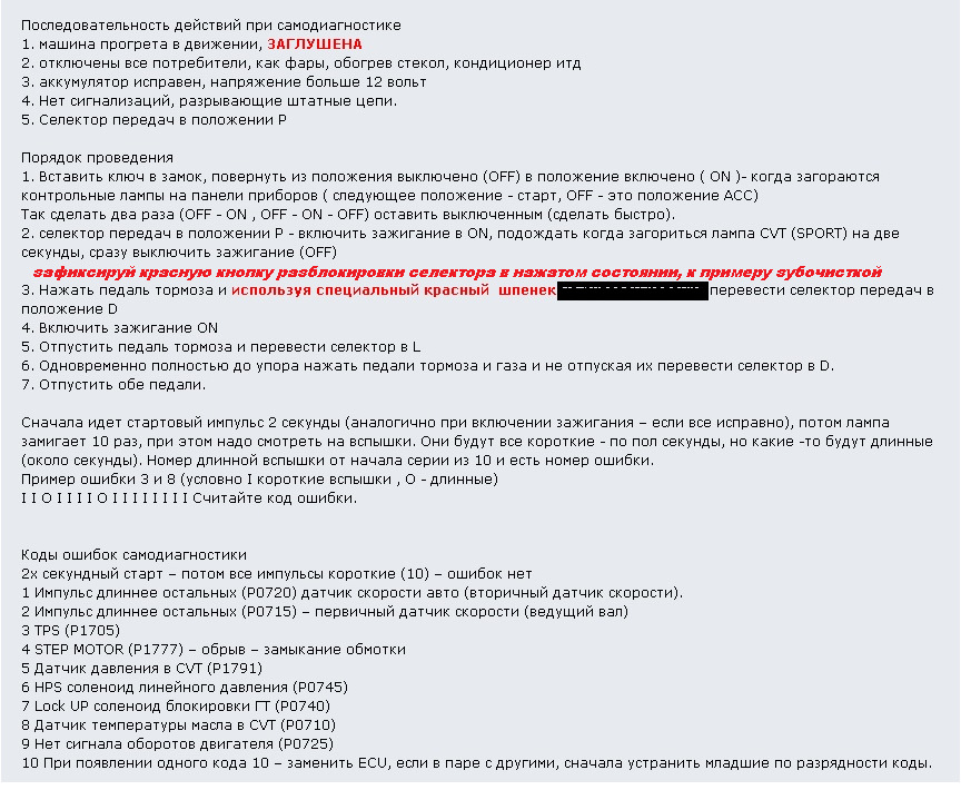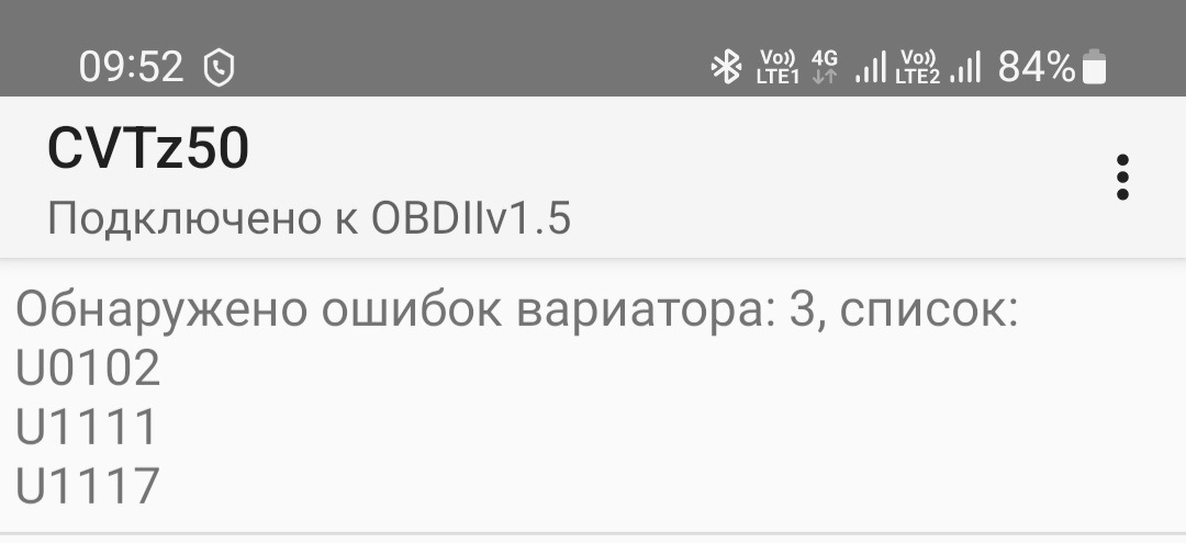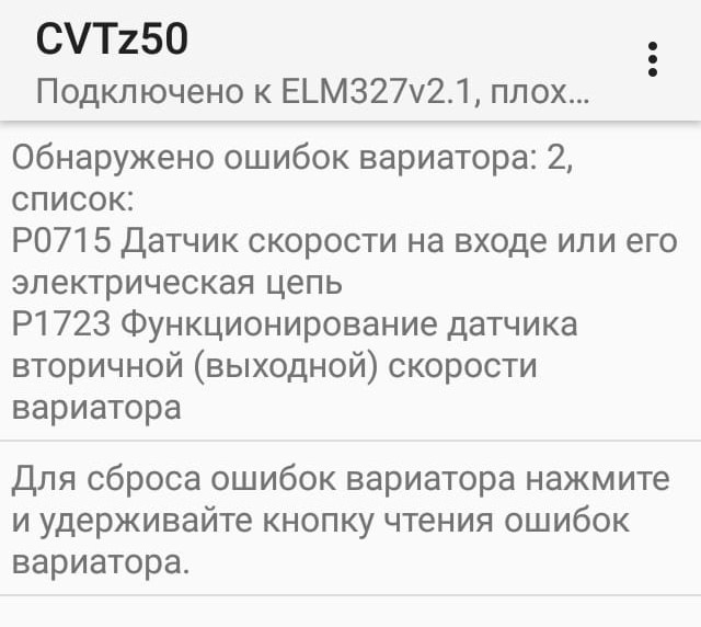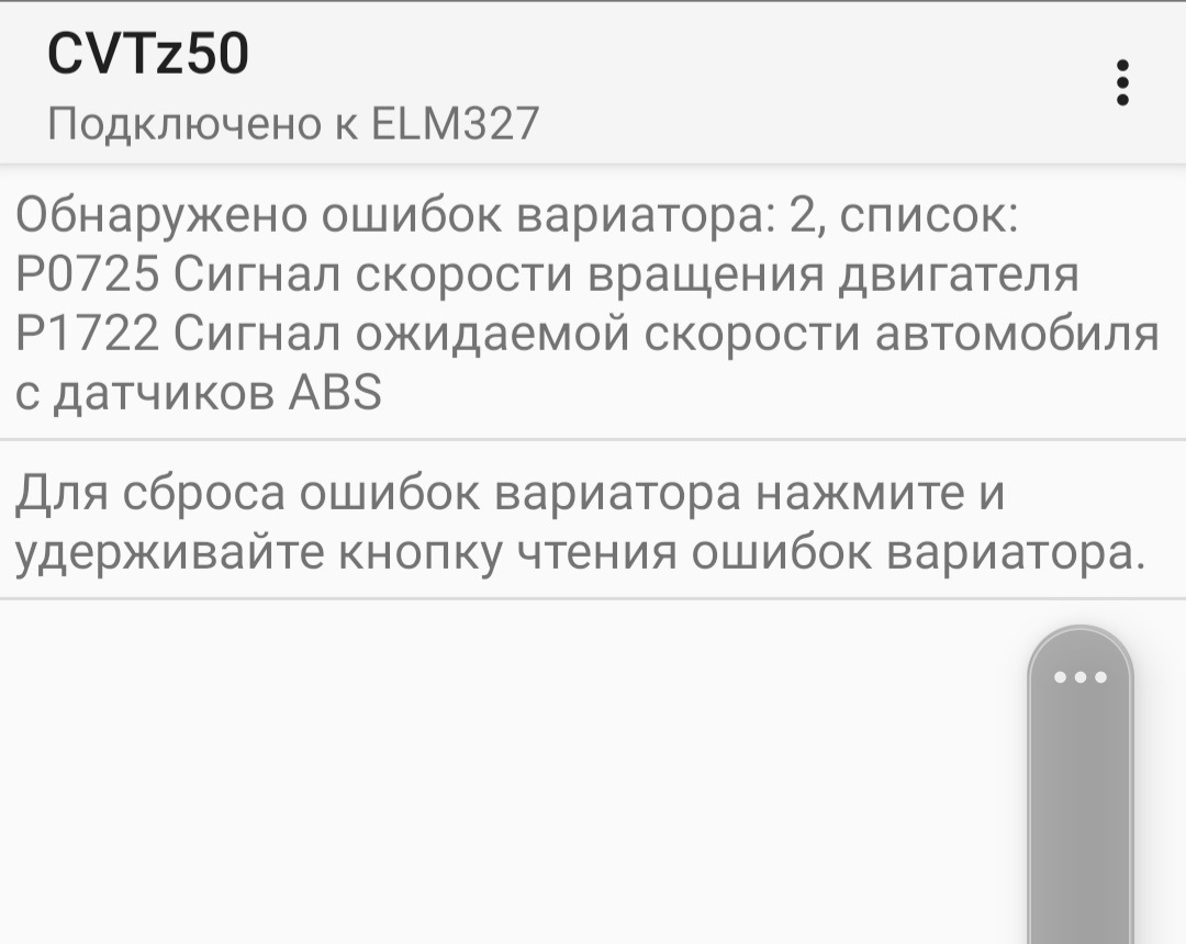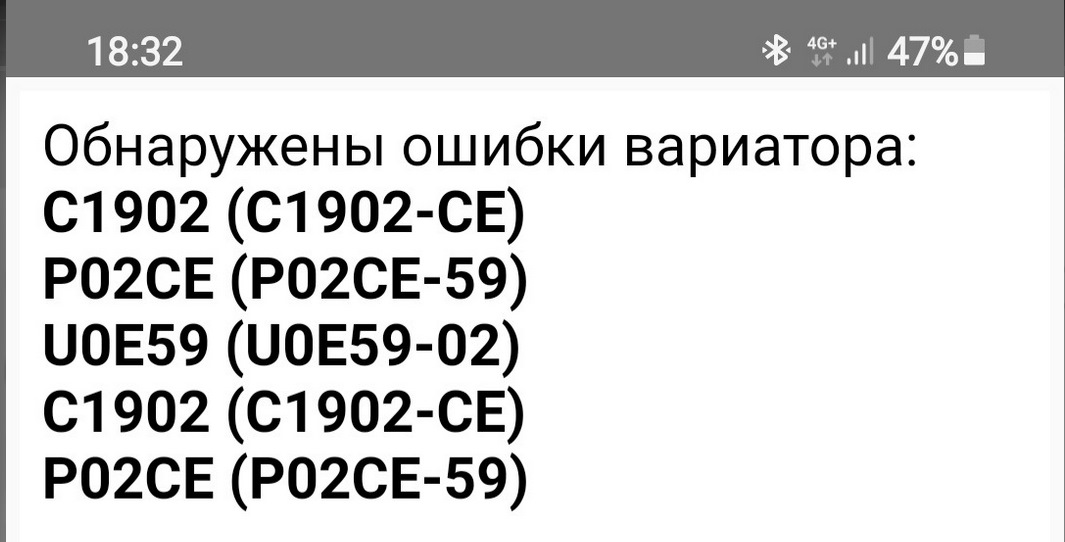 Коды ошибок вариатора