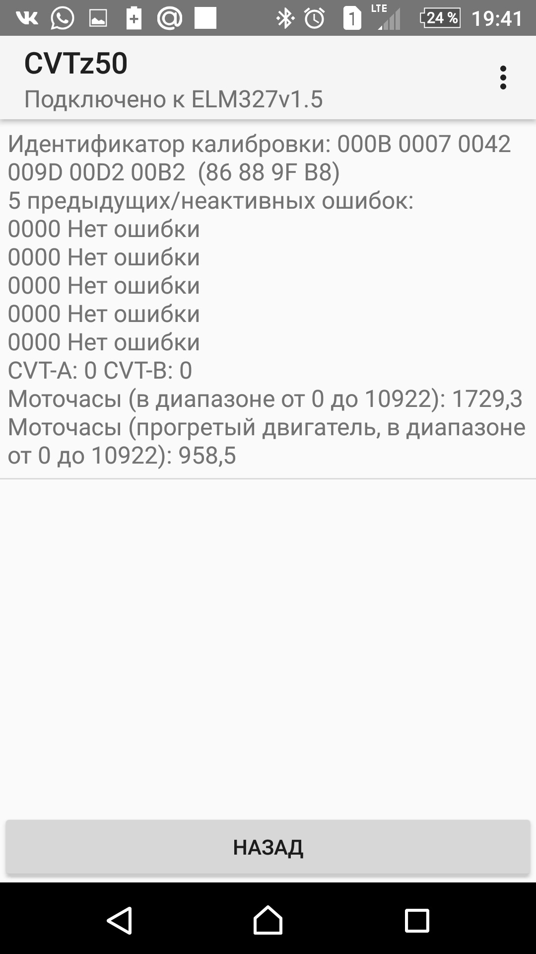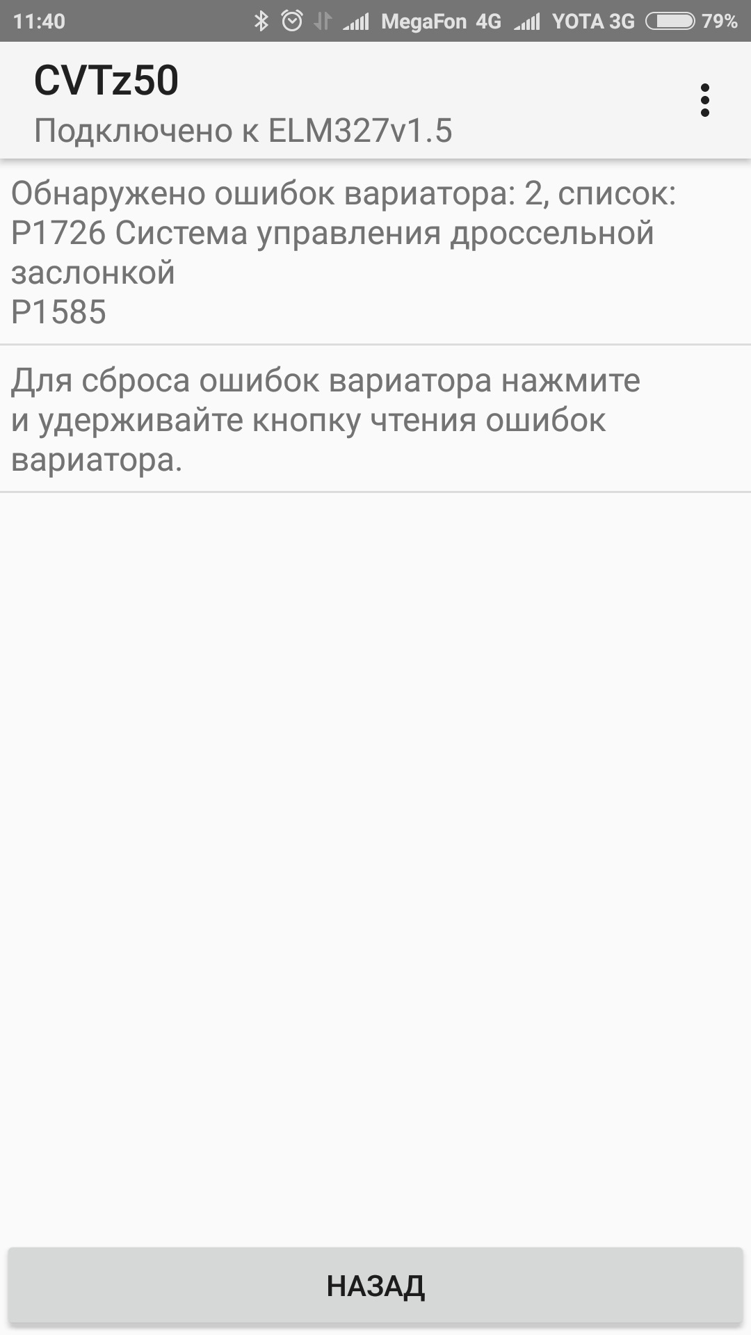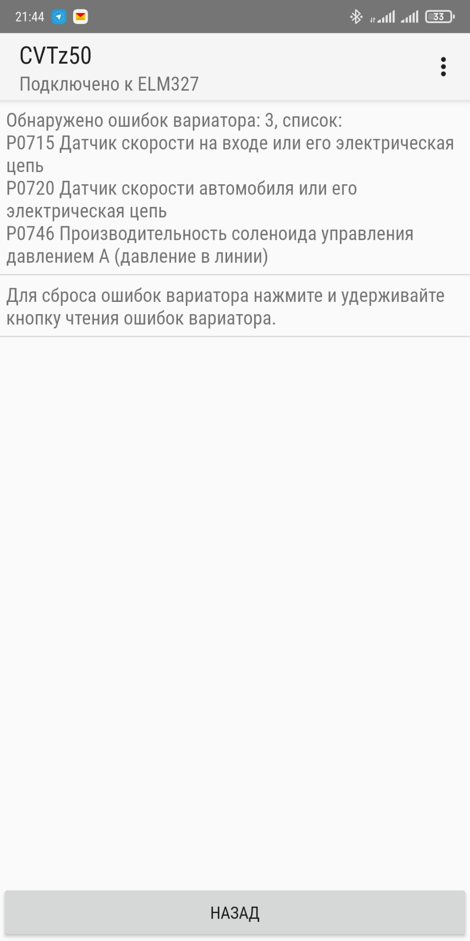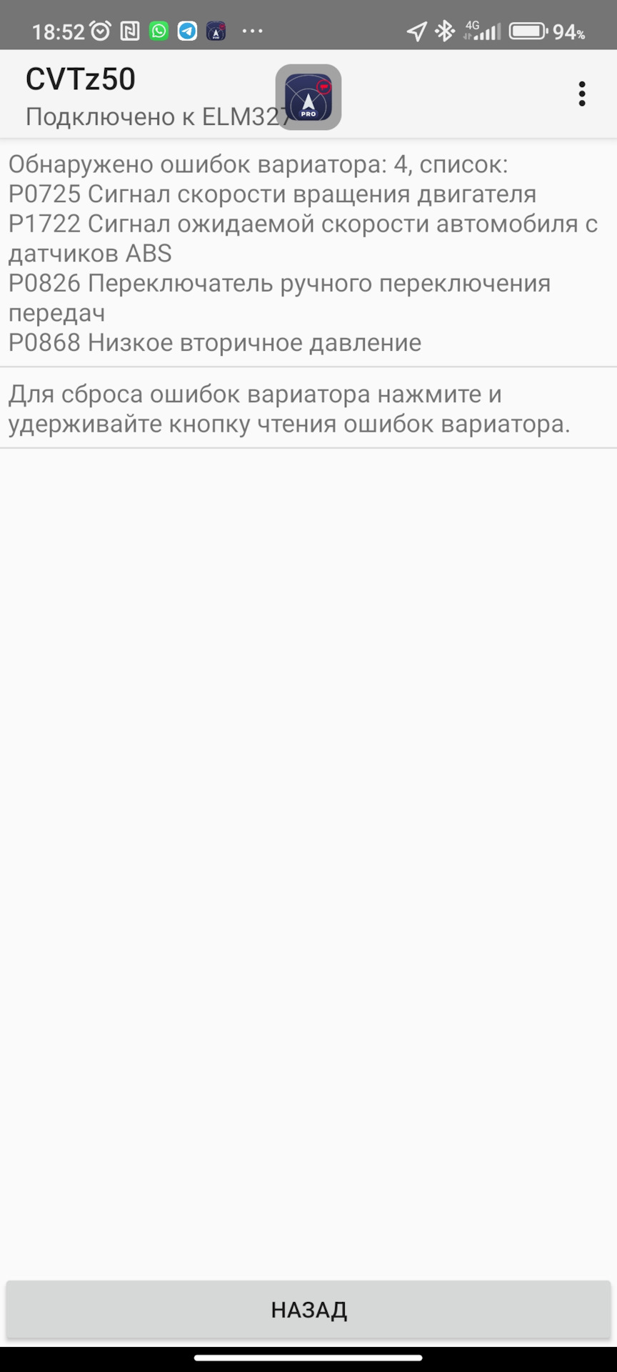 Коды ошибок вариатора