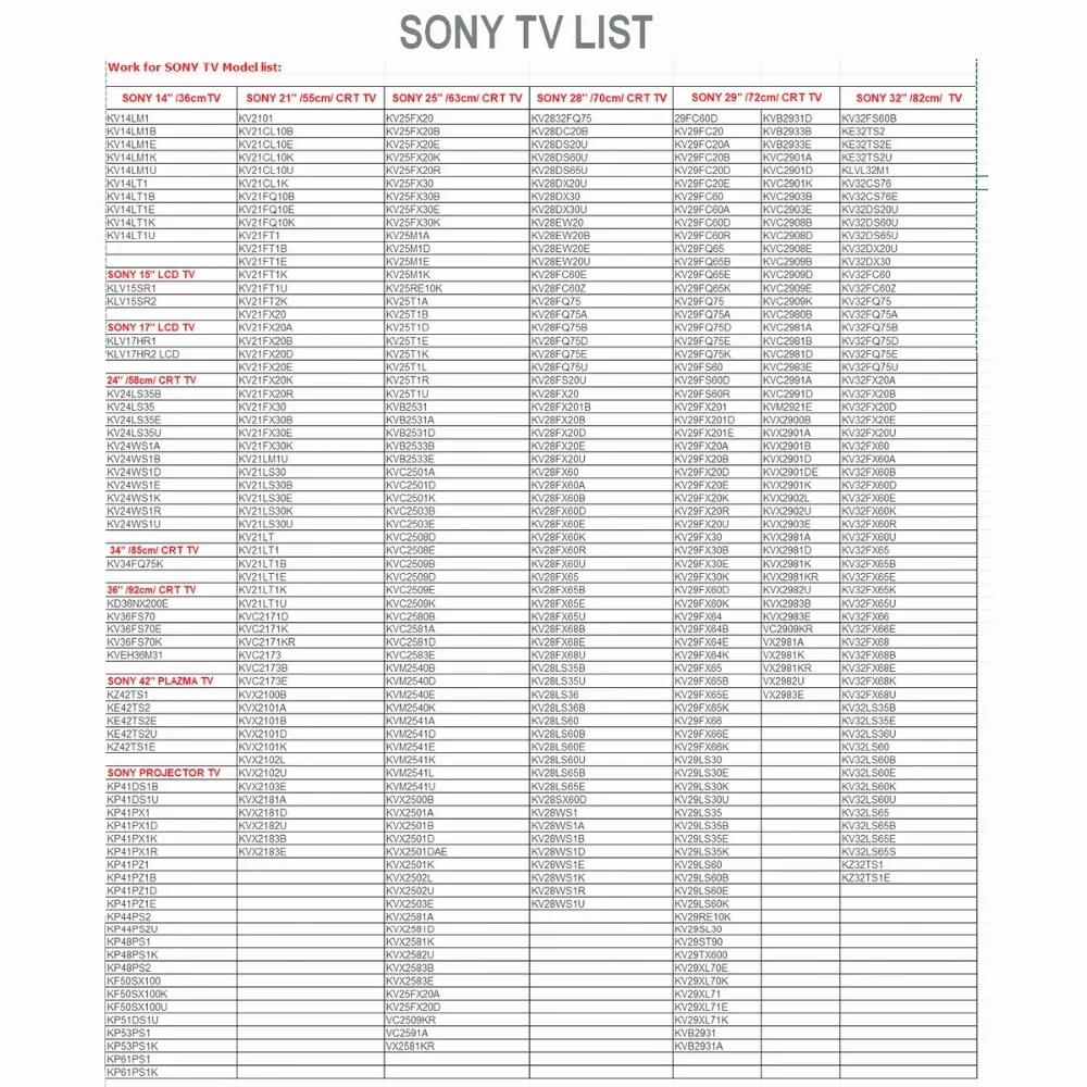 Коды sony телевизор