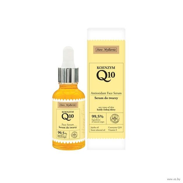 Коэнзим Q10 также используется при создании косметических формул . Элемент поддерживает упругость кожи, наполняет клетки энергией, обеспечивает оптимальный уровень увлажненности, оказывает противовоспалительное и успокаивающее эффекты, стимулирует выработку коллагена .