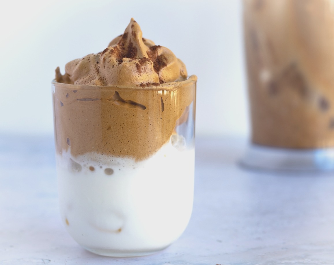 Рецепт этого кофе придумали в Корее, а название Дальгона возникло из-за схожести по вкусу с корейскими конфетами. Для получения этого напитка, нужно в пропорциях 1:1:1 смешать растворимый кофе, сахар и горячую воду, взбить все это миксером или венчиком до появления пены карамельного цвета (от трех до восьми минут), и вылить на охлажденное молоко.