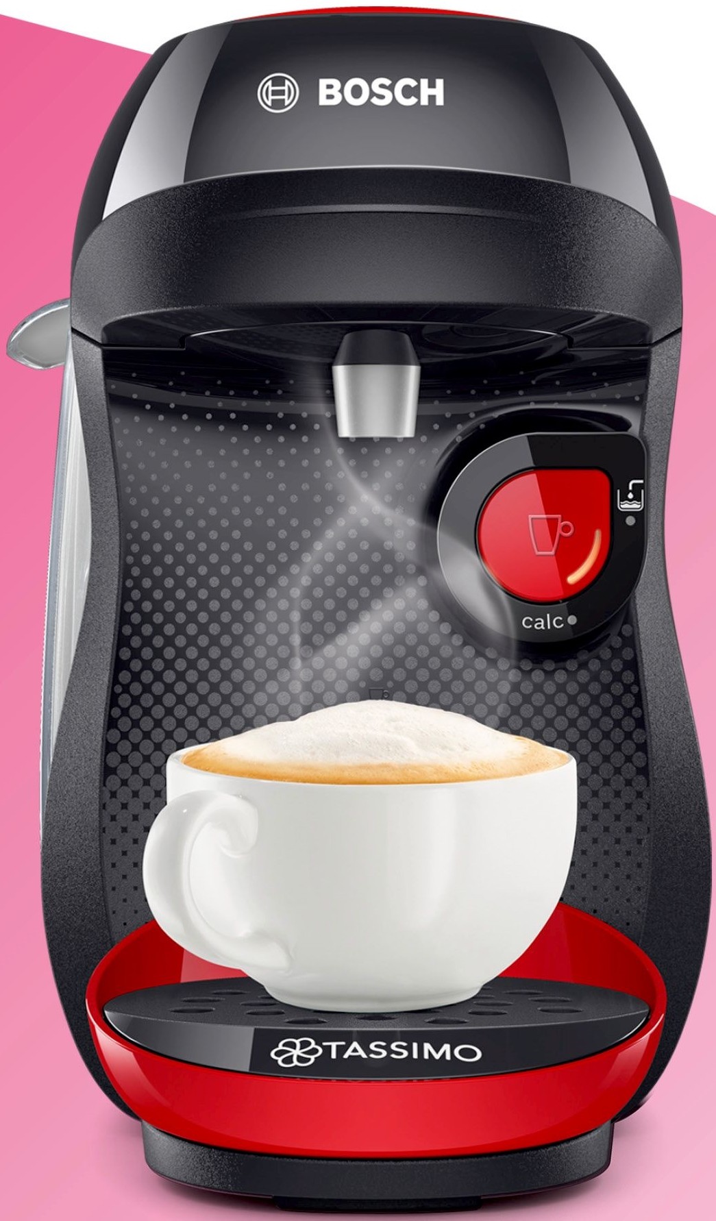 Découvrez la machine à café Bosch TASSIMO HAPPY Rouge/ blanc . La cafetière à dosette HAPPY Rouge/ blanc est très jolie . Compacte Design . Livraison offerte .
