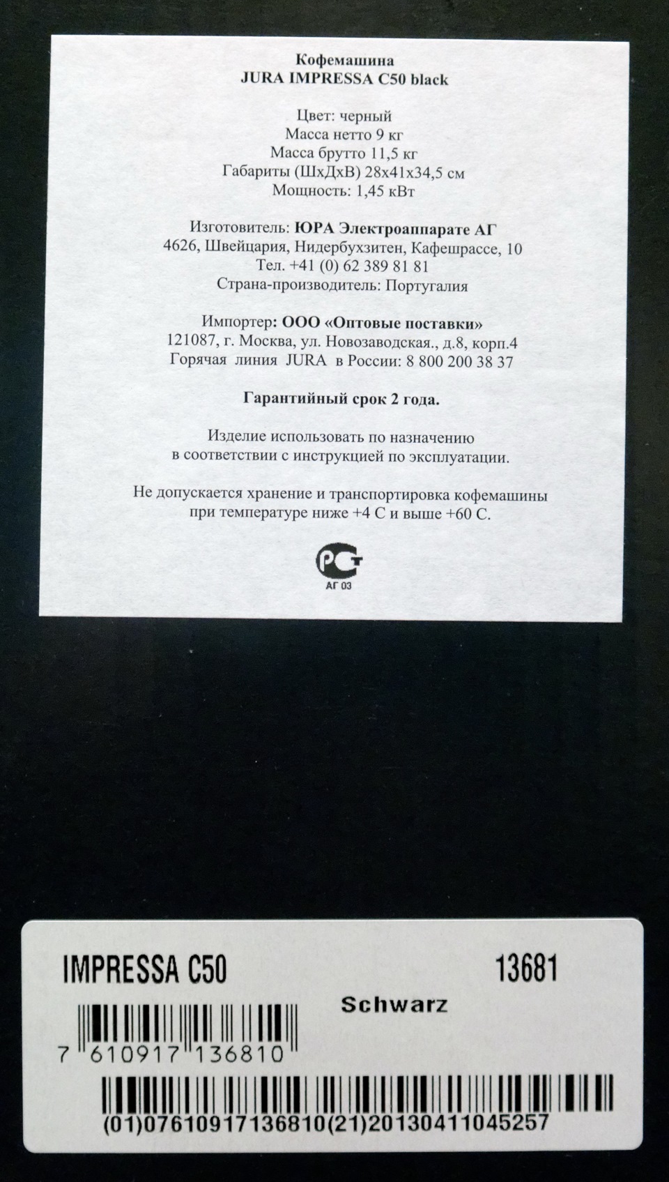 Jura Impressa C50 | Full Specifications & Reviews