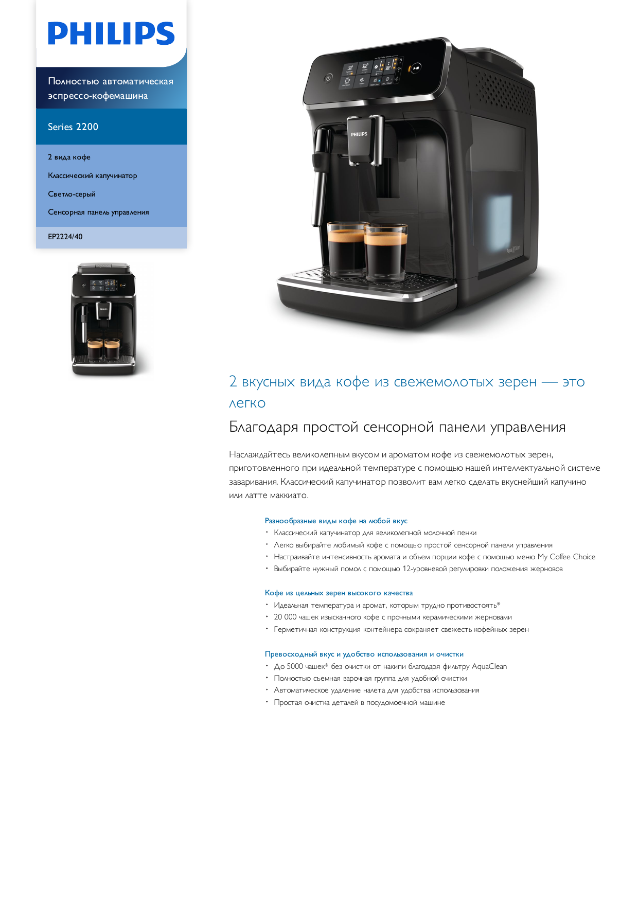Купить Кофемашина Philips EP2224 /40 (светло-серый) в официальном Интернет-магазине Philips