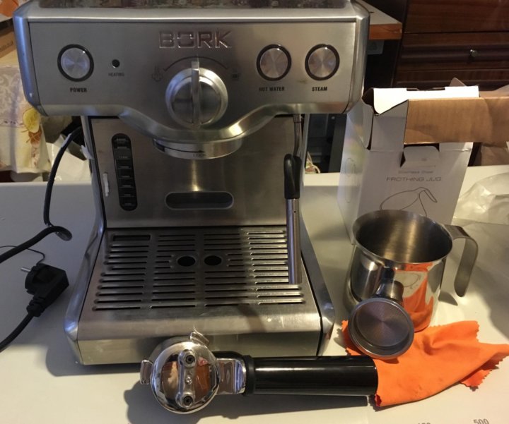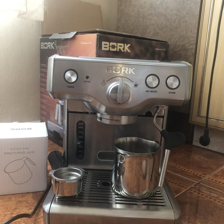 1 . Рожковая кофеварка Bork C800 , она же Bork CM EMN 9922 BK, она же в девичестве Breville 800ESXL the Duo-Temp . Борк С 800 можно сказать базовая кофеварка бренда Бревиль, которая продается по всему миру под разными названиями .