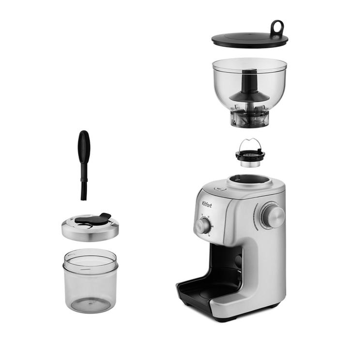 Kitfort : Модель: KT-744: Тип: жерновая кофемолка: Страна производства: Китай: Гарантия: 1 год: Предполагаемый срок службы: 2 года: Потребляемая мощность: 200 Вт: Материал корпуса: пластик, металл: Цвет корпуса