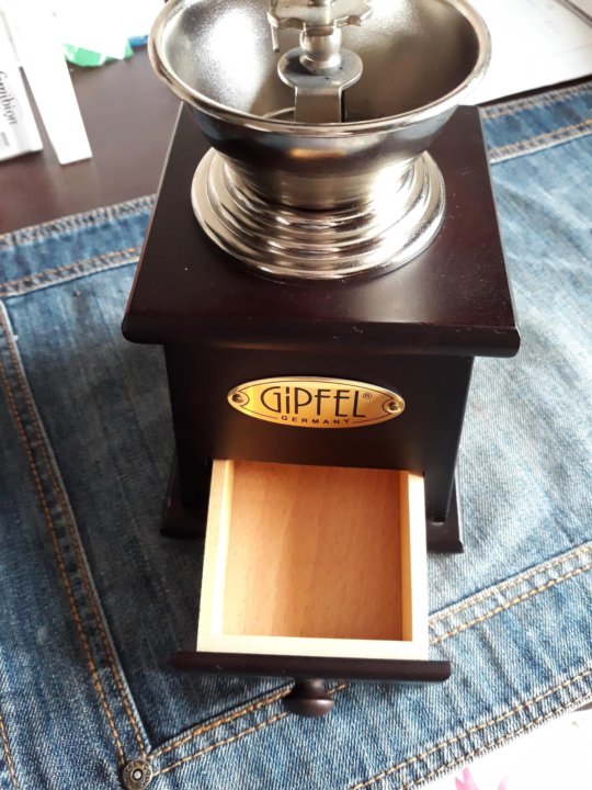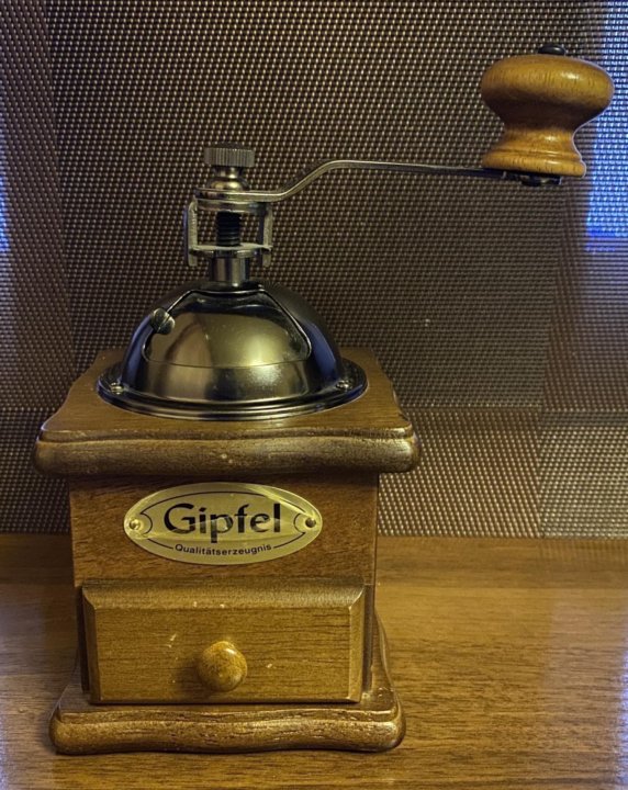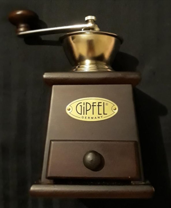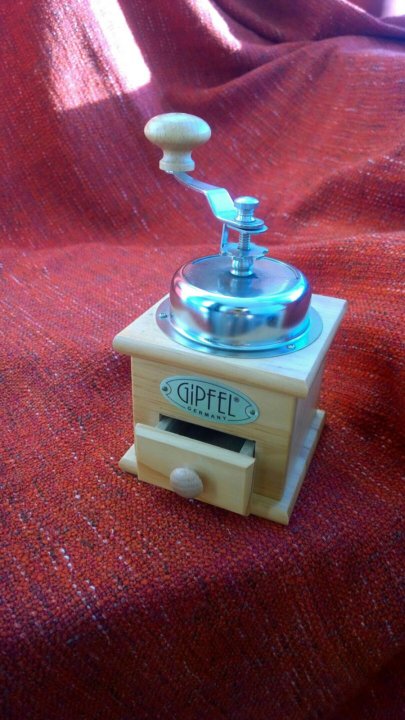 Ручная кофемолка Gipfel . Цена на такую вещицу совсем не демократичная - от 3000 рублей . Товары Gipfel часто встречаются в более-менее крупных хозяйственных магазинах . Моей кофемолке уже 5 лет, поэтому буду рассказывать о всех её плюсах и минусах, которые я отмечаю за время . . .
