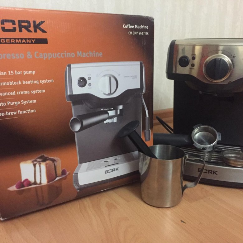 Кофеварка рожковая bork cm emp 9617 bk в хорошем состоянии . Технические характеристики здесь . Фото из интернета . Несколько месяцев активно использовалась, затем всё реже и реже .