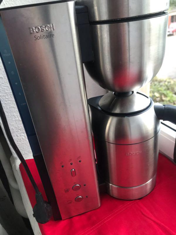 Long summary description Bosch Solitaire Coffee Maker TKA8SL1 Drip coffee maker: This is an auto-generated long summary of Bosch Solitaire Coffee Maker TKA8SL1 Drip coffee maker based on the first three specs of the first five spec groups . Bosch Solitaire Coffee Maker TKA8SL1 . Product type: Drip coffee maker, Capacity in cups: 12 cups .