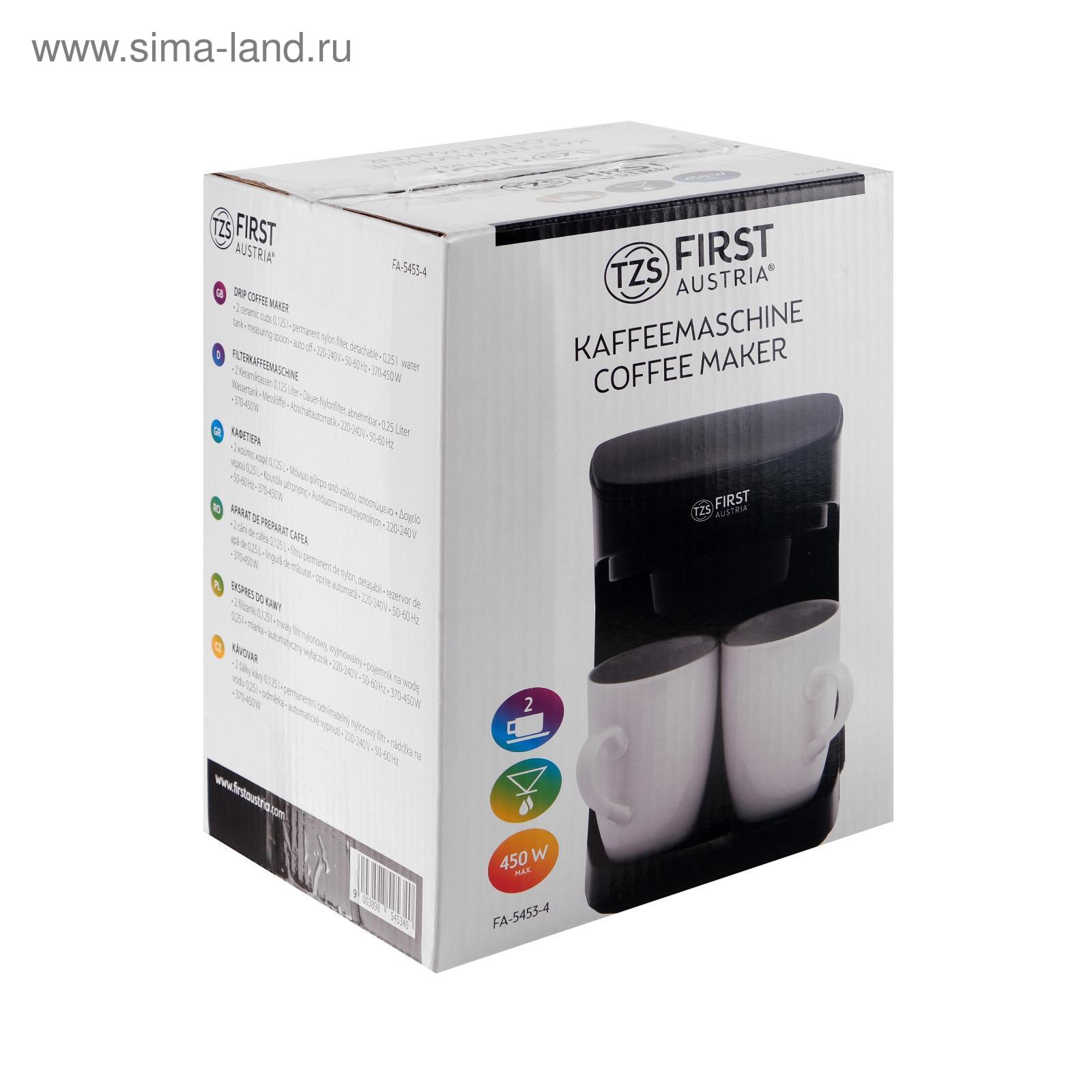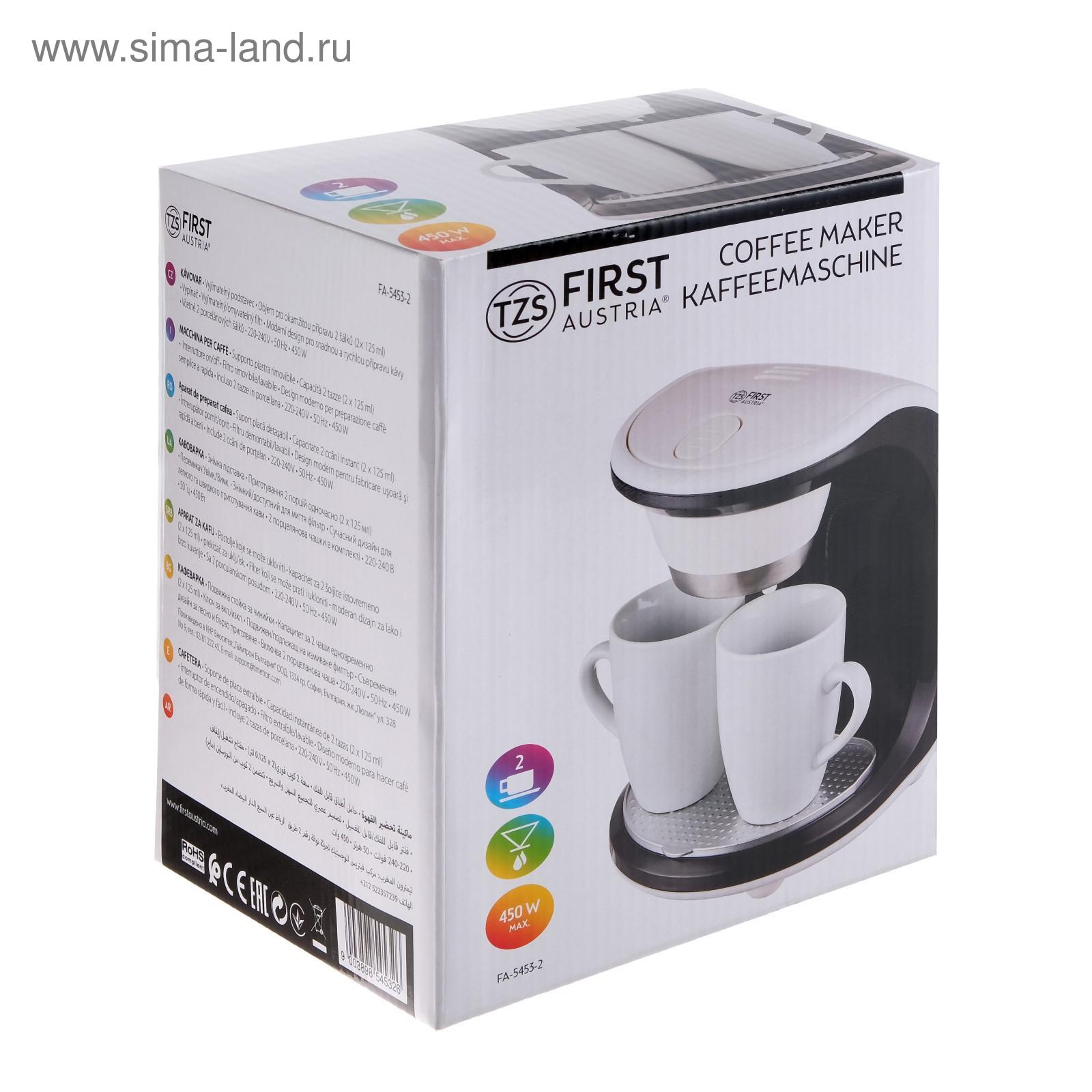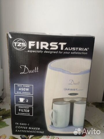 FIRST AUSTRIA 5453-2 отзывы . Маленькая кофеварочка для 1-2 человек . В комплекте 2 кружки по 125 мл (вместо них можно поставить одну побольше), постоянный фильтр, мерная ложечка . Простая в использовании . . .
