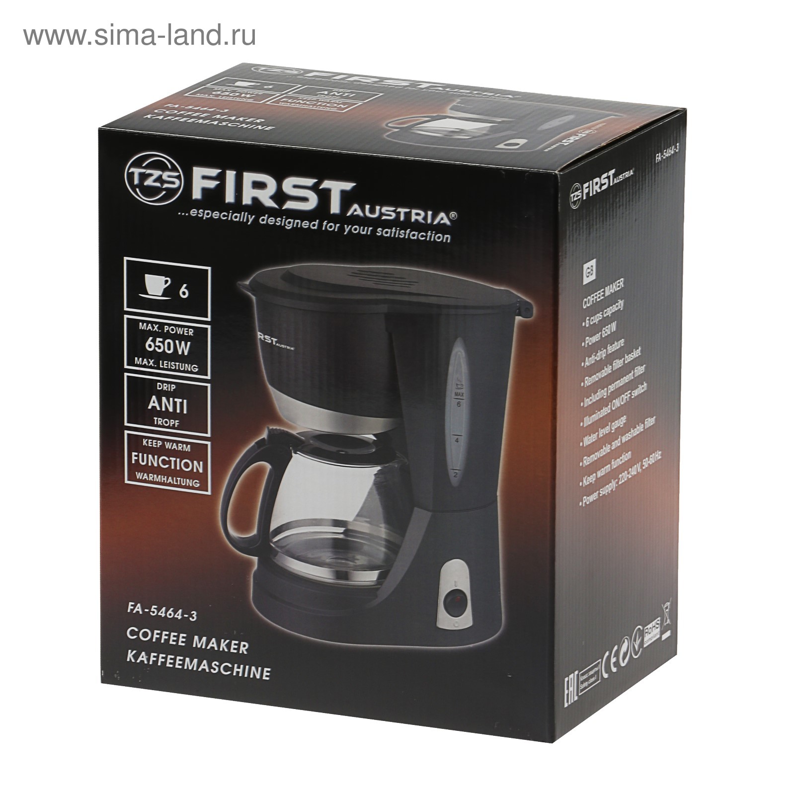 Кофеварка FIRST FA - 5464 -4 Black /Steel (капельная; 750 Вт; резервуар 0,6 л; подогрев колбы; автоотключение), Наслаждайся Бесплатная доставка по всему миру! Предложение ограничено по времени! Удобный возврат!