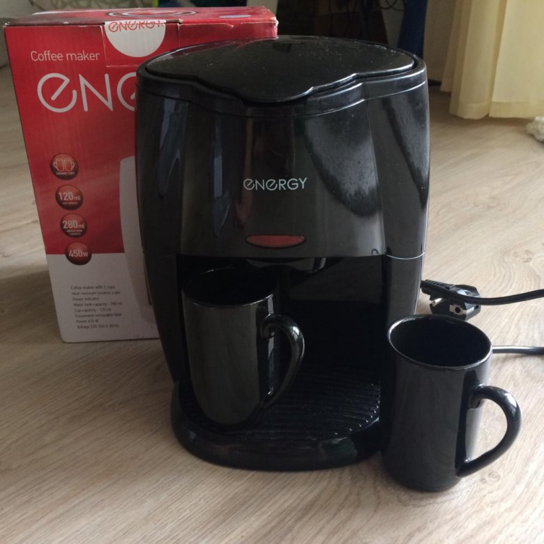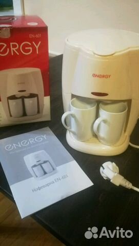 Кофеварка energy en-601 Кремовая на 2 чашки капельная с п . . . Мини кофеварка на две чашки - Кофеварка с двумя керамическими чашками для приготовления кофе "Американо" ВСЯ кофейная остается в фильтре, а не в стакане .