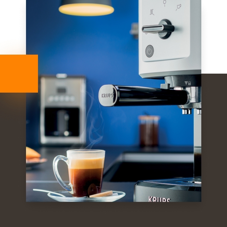 Krups Espresso Intenso Calvi Meca XP344010 . È una caffettiera compatta, dall'aspetto solido, e realizzata in acciaio inossidabile, con la quale puoi lavorare il tuo caffè come un professionista da casa .