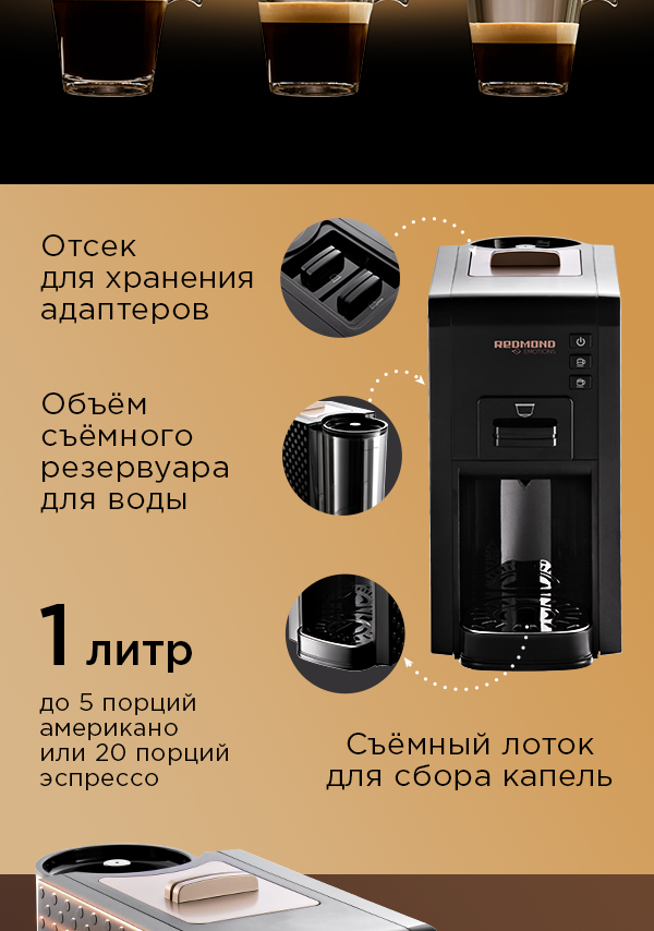 Кофеварка капсульная REDMOND RCM- 1527 Характеристики, описание Отзывы и цена на RCM- 1527 Купить недорого ★ Фирменный магазин REDMOND 📞 8-800-200-77-21