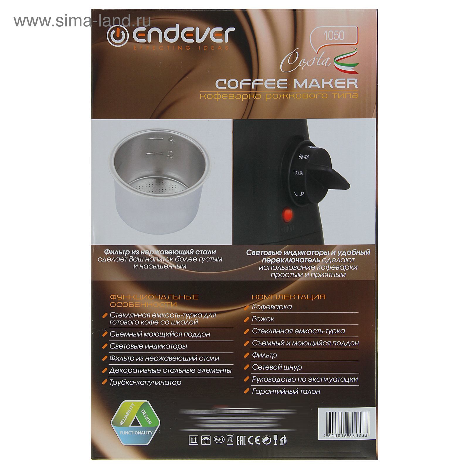 Кофеварка рожкового типа Endever Costa 1050 | отзывы
