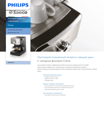 Кофеварка рожковая Saeco HD8323 Poemia — купить сегодня c доставкой и гарантией по выгодной цене . Кофеварка рожковая Saeco HD8323 Poemia: характеристики, фото, магазины поблизости на карте . Достоинства и недостатки модели . . .