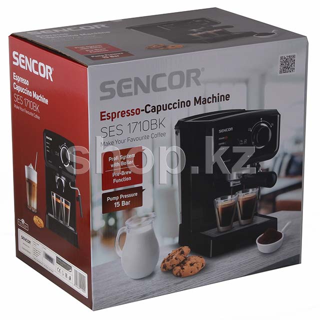 Кофеварка Sencor SES 1710BK позиционируется как доступный продукт средней ценовой категории, предназначенный приготовления обычного и двойного эспрессо, капучино и латте .