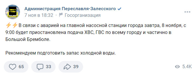 Когда дадут воду в переславле