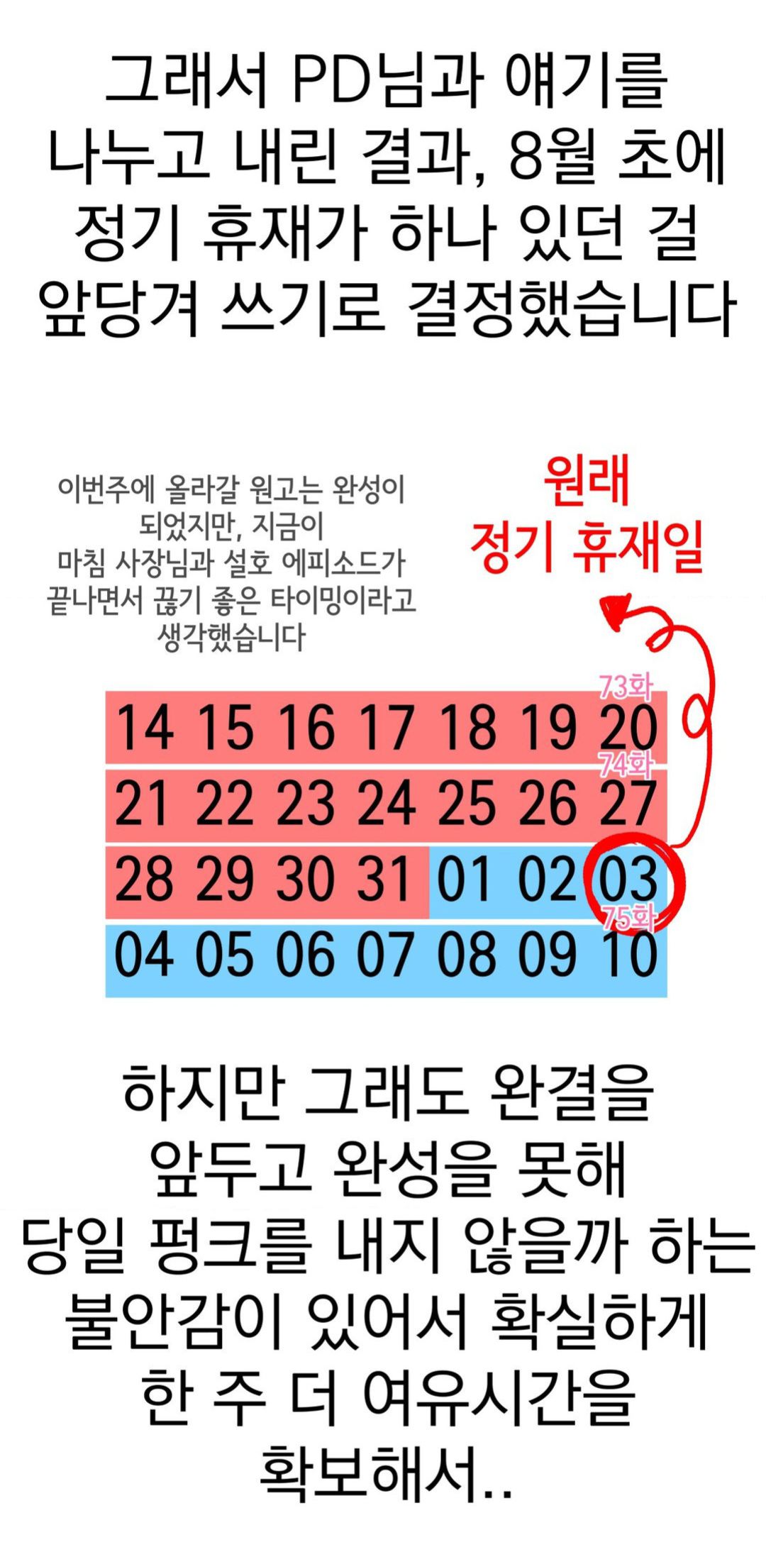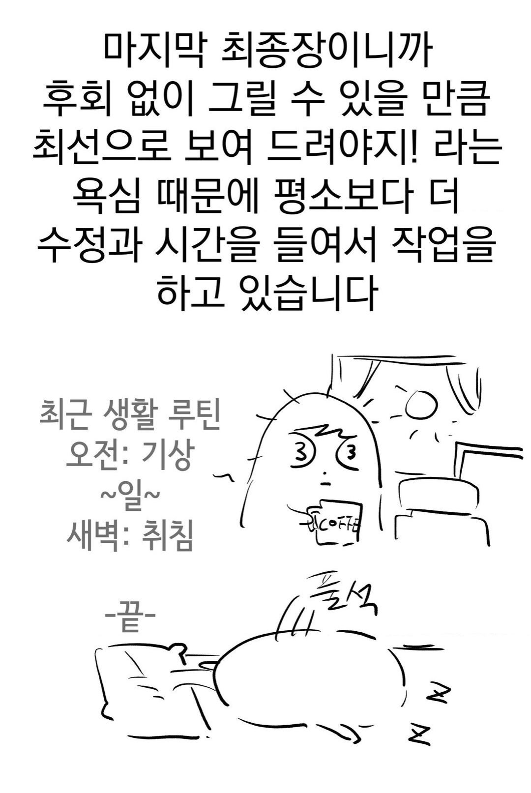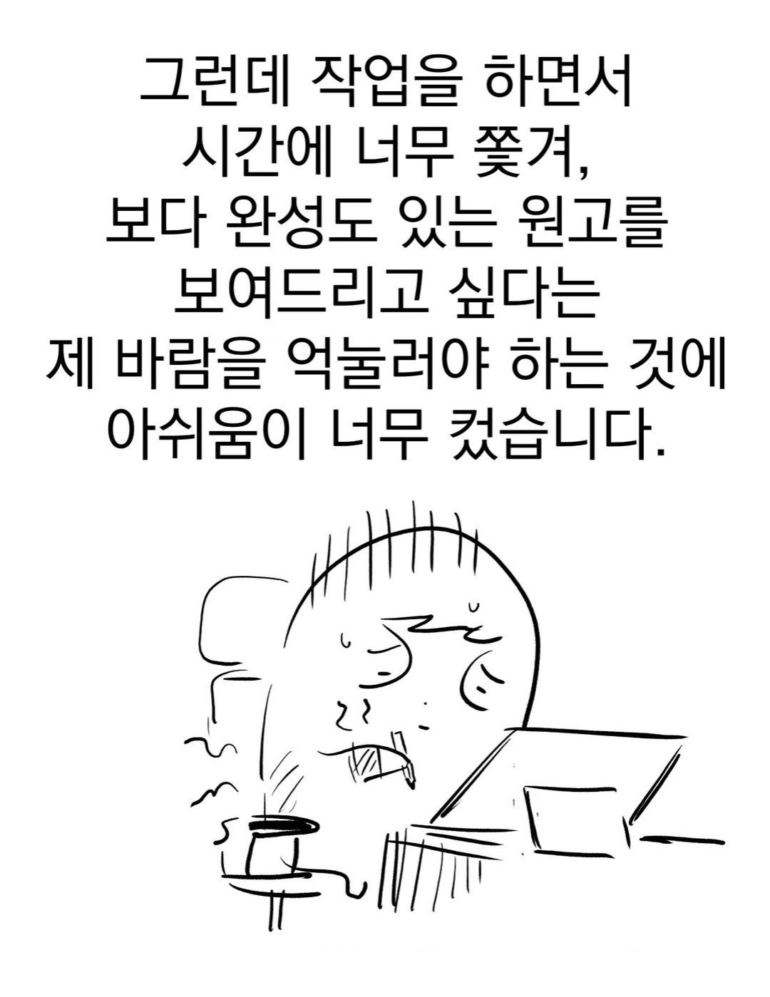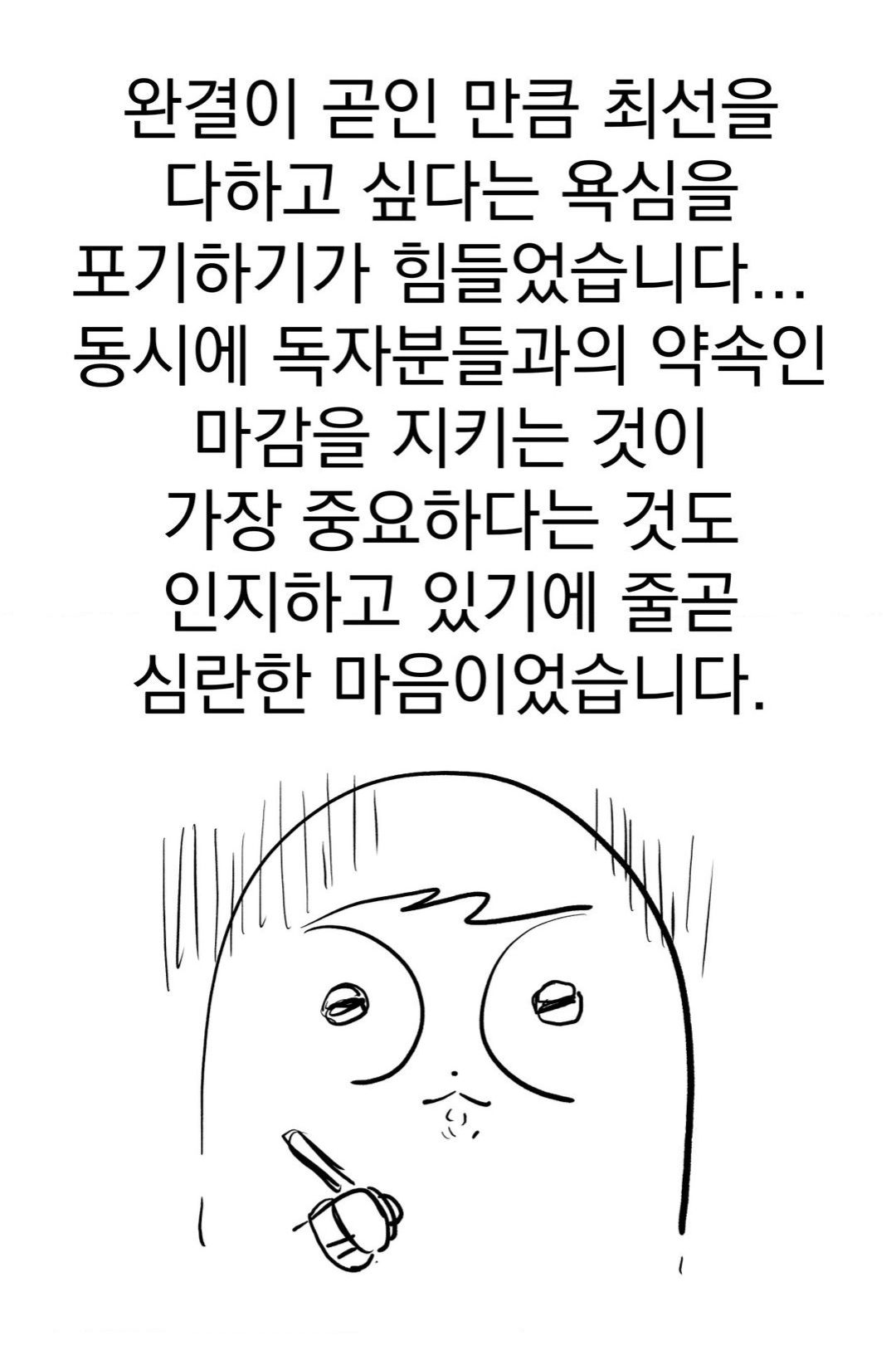 Но, работая над вебтуном, я всё время опаздываю, и это очень огорчает меня, ведь я хочу показать вам более качественный продукт.
