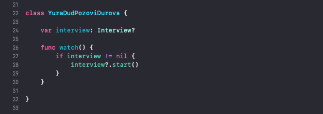 28-ая строка - ставить туда self.interview?.start() или оставить без self?