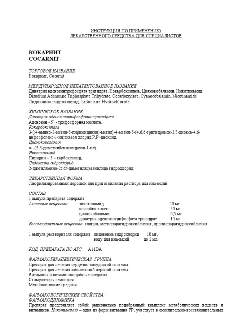 Кокарнит инструкция по применению: показания . . .