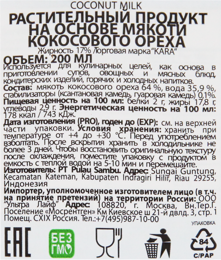 Кокосовое молоко ингредиенты