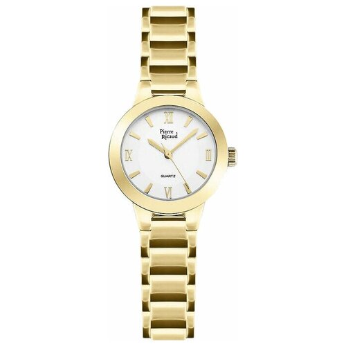 yuvarlak kadranlı kadın kuvars kol saati. Altın çelik bileklik üzerinde yuvarlak kasalı kadın kuvars saati. Alman markası "Pierre Rico"nun temel stili klasik ve özlüdür; ayrıca parlak ve zıt unsurlara sahip bir spor saat serisi de sunulmaktadır. Karmaşık ve süslü parçaların ve teknolojilerin bulunmaması, ürünlere özel bir çekicilik ve çekicilik kazandırarak saati pratik ve çok yönlü hale getiriyor. Üretimde İsviçre veya Japon mekanizmaları, safir veya mineral cam, paslanmaz çelik, titanyum, seramik, kauçuk ve hakiki deri gibi malzemeler kullanılıyor. Tüm modellerin kasaları PVD kaplamaya sahiptir. Erkeklerin ilgisini çeken saatler klasik tasarımları, kullanım kolaylığı ve kusursuz Alman kalitesidir. Kadın modelleri daha zarif ve romantiktir ancak unisex modeller gibi güvenilirlik ve hassasiyet açısından hiçbir şekilde aşağılık değildir. Tüm ürünler mekanik strese karşı dayanıklıdır ve nemden korunur, şık bir tasarıma sahiptir ve dayanıklıdır. Uygun fiyat aralığı onları tüketicilerin gözünde daha da çekici kılıyor. Mekanizma tipi: kuvars. Güç tipi: pille çalışır. Zaman görüntüleme yöntemi: analog (oklar). İndeksler: Romalı ve kesikli. İbreler: saat, dakika ve saniye. Kadran mineral camla korunmaktadır. Mineral cam darbeye dayanıklıdır ve oldukça şeffaftır. Kasa ve bilezik PVD kaplamalı paslanmaz çelikten yapılmıştır. Paslanmaz çelik, korozyona dayanıklı, güçlü ve dayanıklı bir malzemedir. Kaplama aşınmaya ve çizilmelere karşı dayanıklıdır. Katlanır geçmeli toka. Yivli taç. Neme dayanıklı WR 30 (3 bar) - 3 ATM. Sıvı sıçramaları, hafif yağmur gibi kazara temas için tasarlanmış, minimum su direncine sahip bir saat. Menşe ülkesi: Almanya. 1 yıl garanti.Kol saati Pierre Ricaud P21080.1163Q.