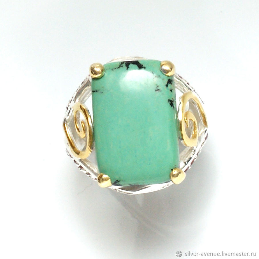 Кольца с зеленой бирюзой 138 фото