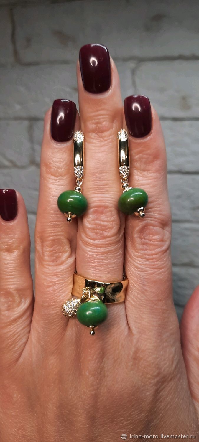 Кольца с зеленой бирюзой
