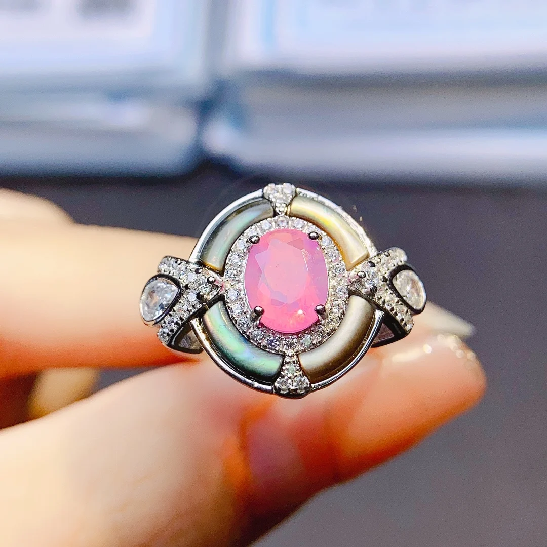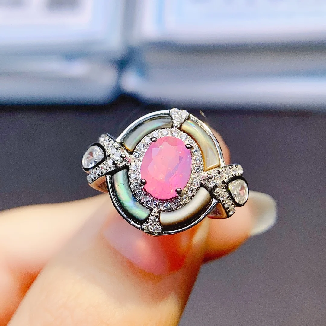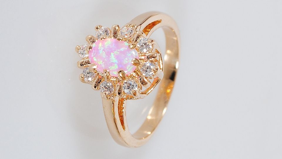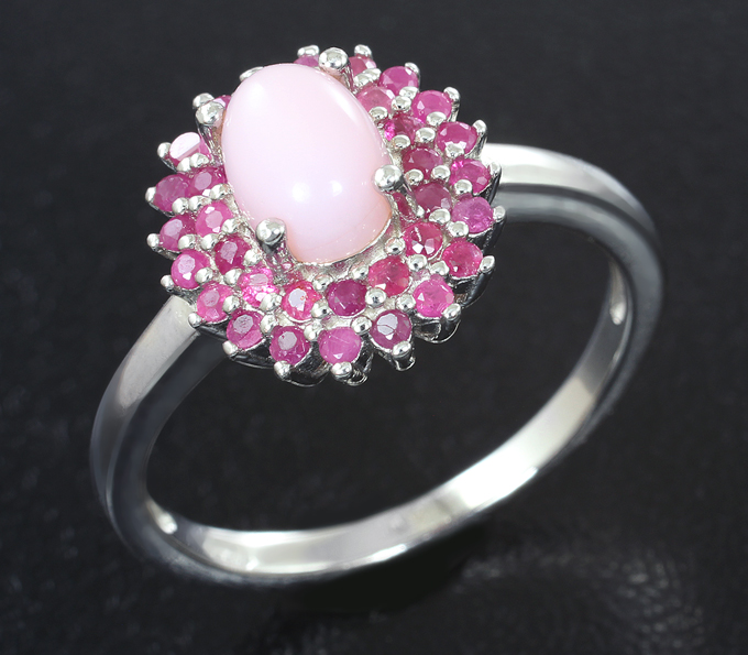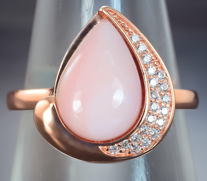 Кольцо с розовым опалом