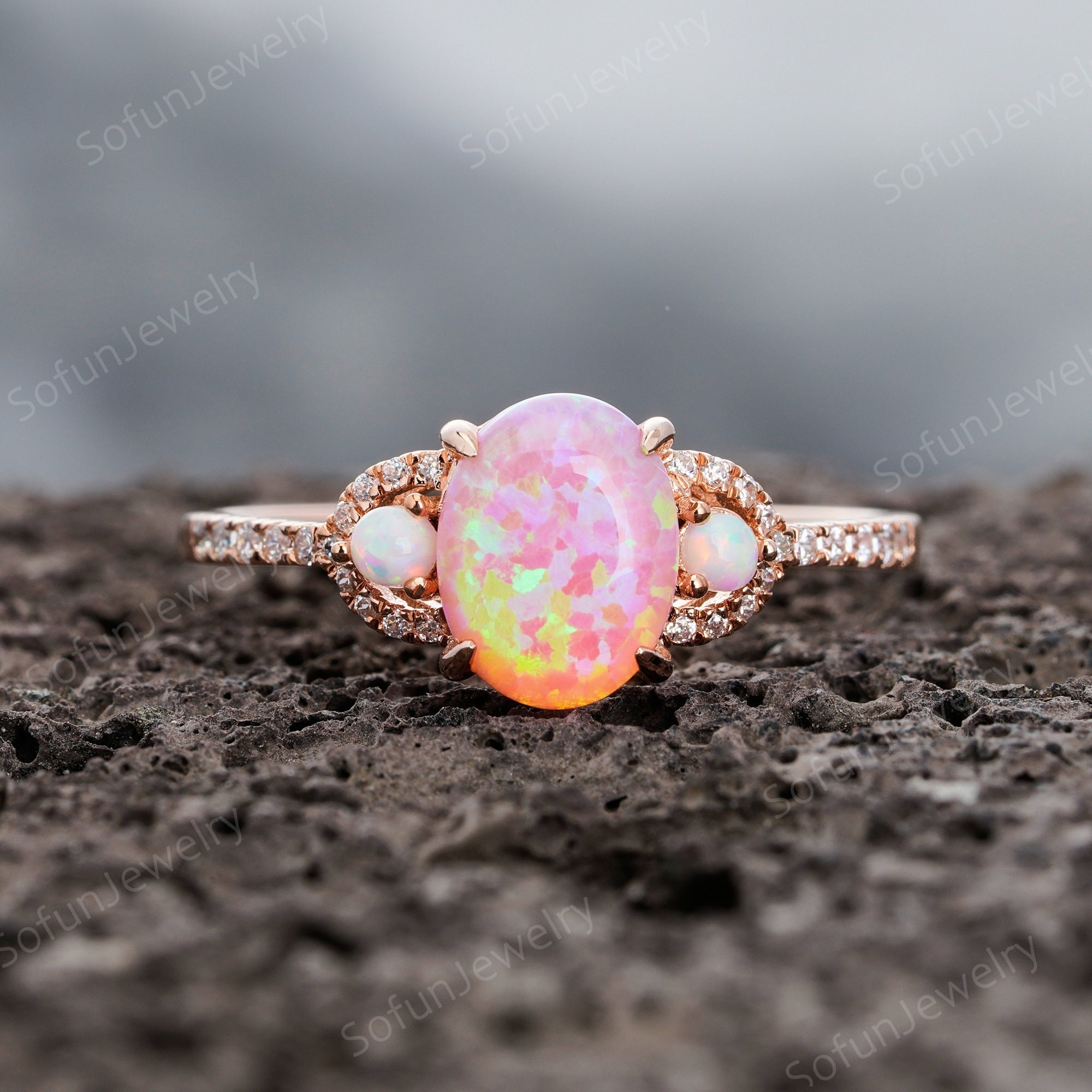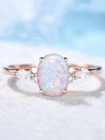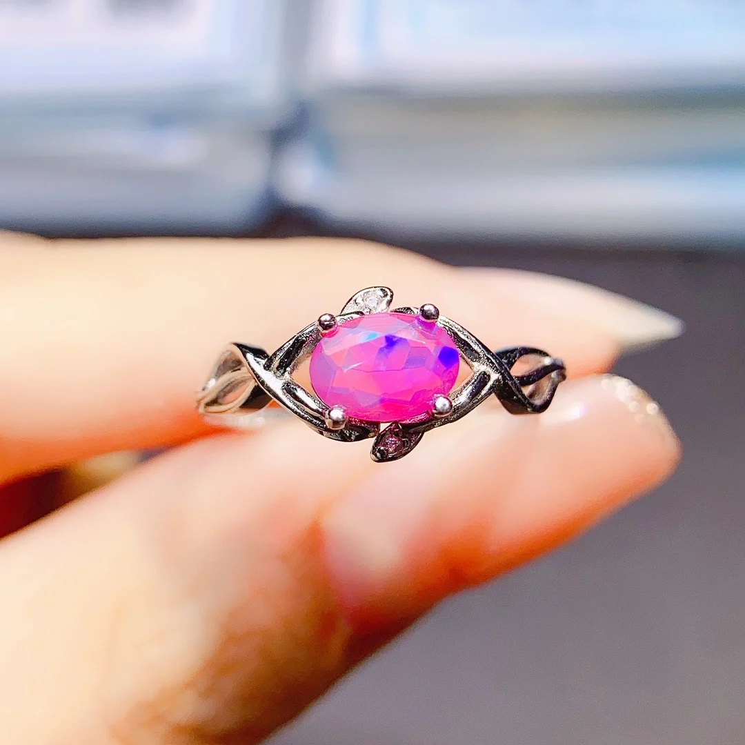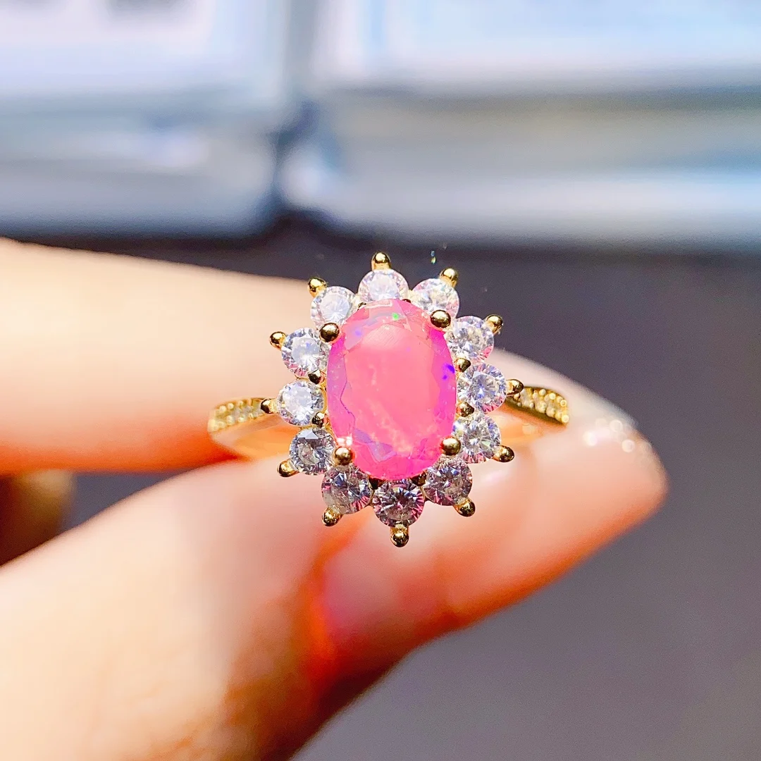 Кольцо с розовым опалом