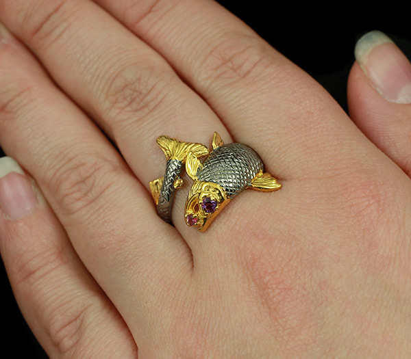 Кольцо золотая рыбка