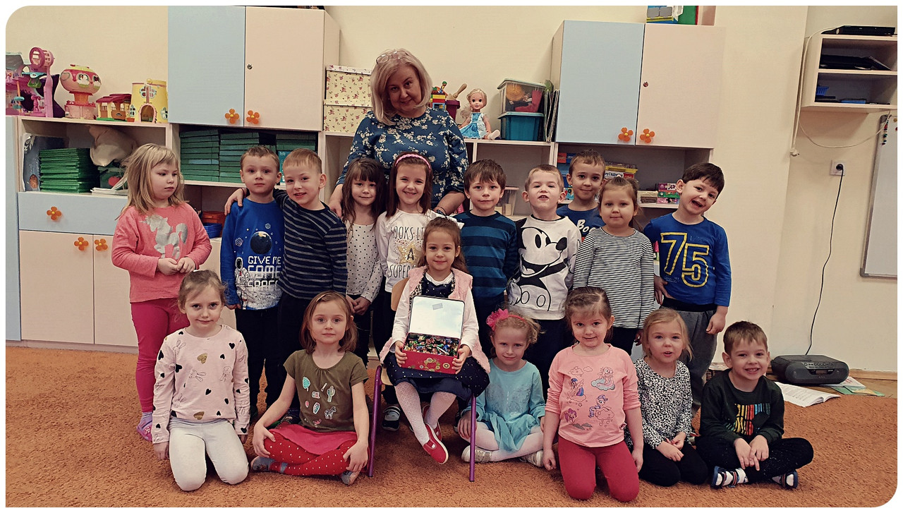 W grupie pracują nauczycielki Lidia Brzezik, Alicja Ogonowska, pomoc nauczyciela Magdalena Kosowska i woźna oddziałowa Anna Jurczak . W przedszkolu jest wspaniale . Poznajemy nowe koleżanki i kolegów . Dobrze czujemy się w naszej sali, która jest bardzo kolorowa i pełna zabawek, gier, układanek . Bardzo lubimy się razem bawić .