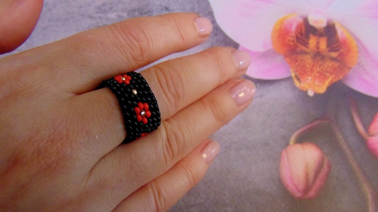 Колечко из бисера черный 146 фотографий