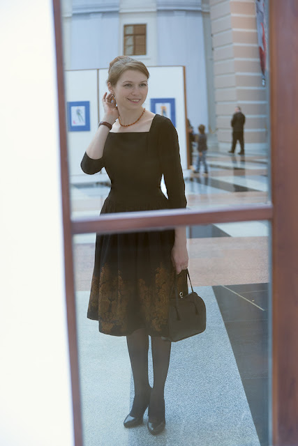 Колготки под юбкой приятно облегают прекрасную попку