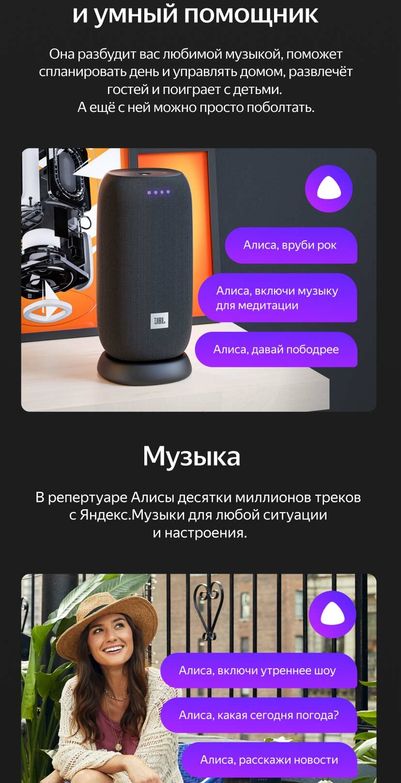 Яндекс .Станция . Яндекс .Станция Макс . Яндекс .Станция Мини . JBL Link Portable с Алисой . JBL Link Music с Алисой . LG Xboom AI ThinQ WK7Y . Prestigio Smartmate Маяк Edition . Elari SmartBeat . Итоговый рейтинг колонок с «Алисой» на 2021 год .