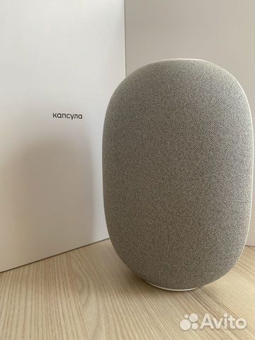 Умная колонка Маруся mail .ru group капсула mrc01 Белая . Капсульный дизайн . При взгляде на коробку может показаться, что внутри лежит гигантская колонка .