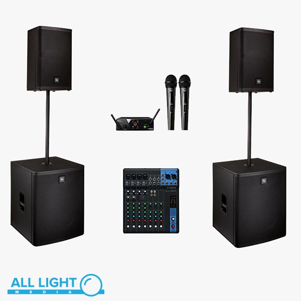 Активные колонки (Yerasov A-220R или AAC-200R) + простой микшер (~8-12 каналов) BehringerилиПассивные (Yerasov 15LX-200