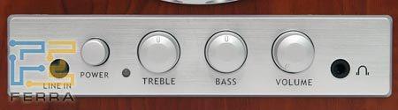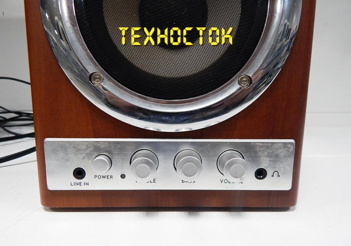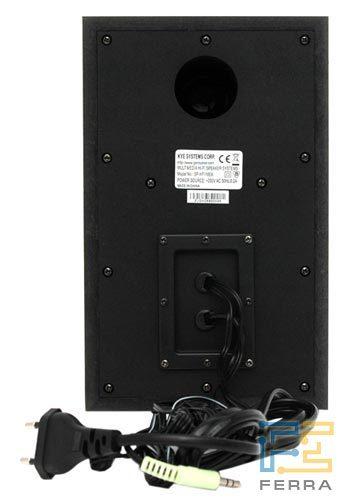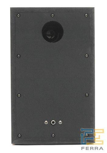 Выведен сзади - при размещении колонок на столе это не мешает . Genius SP-HF1100X - вид сзади 2 . СЧ/НЧ-динамик закрыт нейлоновой чёрной сеткой, которая крепится к блестящему декоративному кольцу . . .