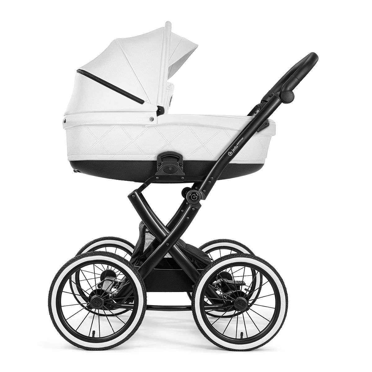 Коляска с черными колесами