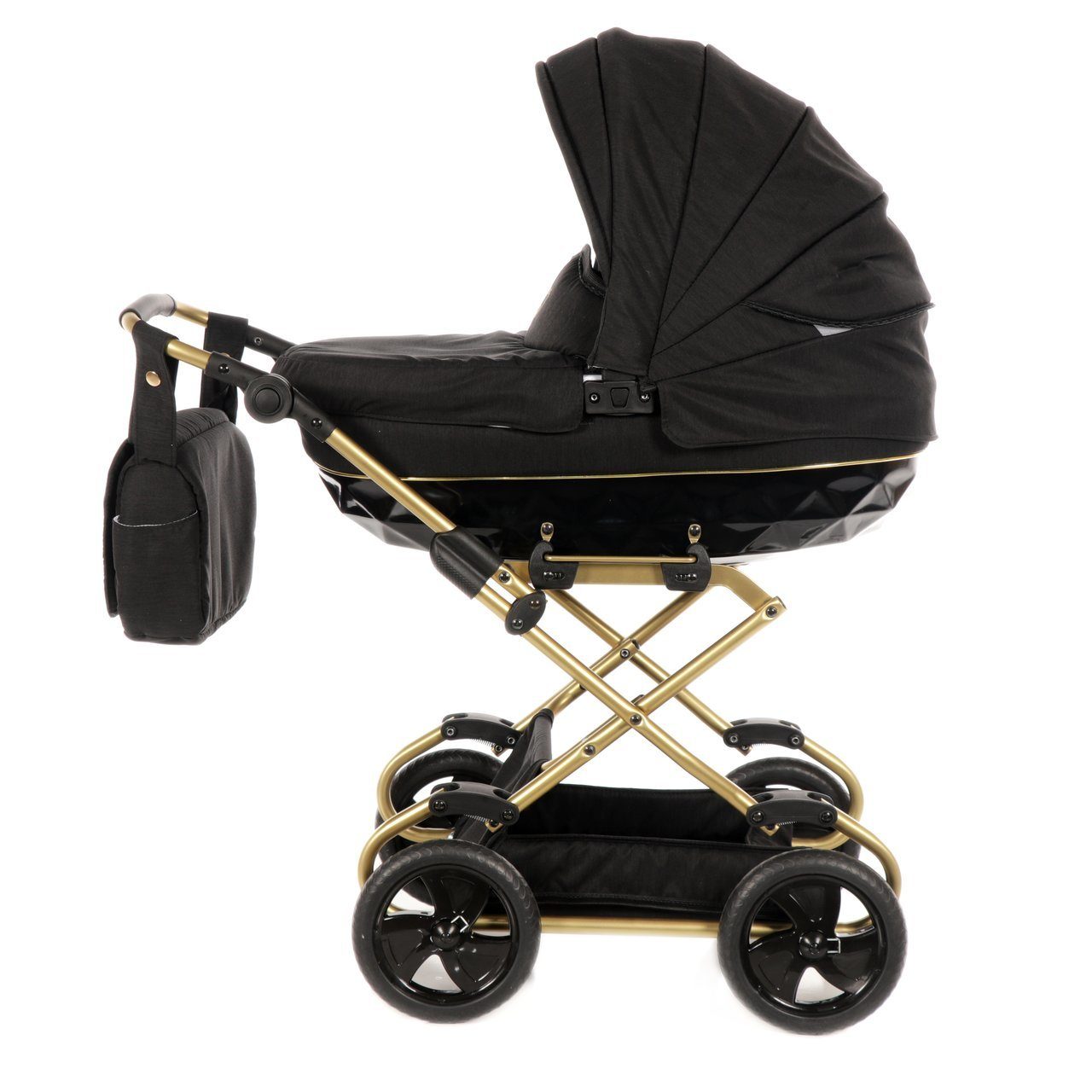 Коляска с черными колесами 154 фото