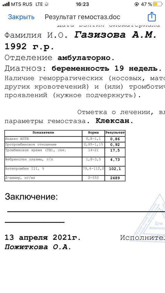 Сейчас колю клексан 0,2 (мой вес 47 кг) . Сдала гемостазиограмму, 2 покпзателя не в норме: АЧТВ 38,2% при норме до 36,8% и Антитромбин iii . . .