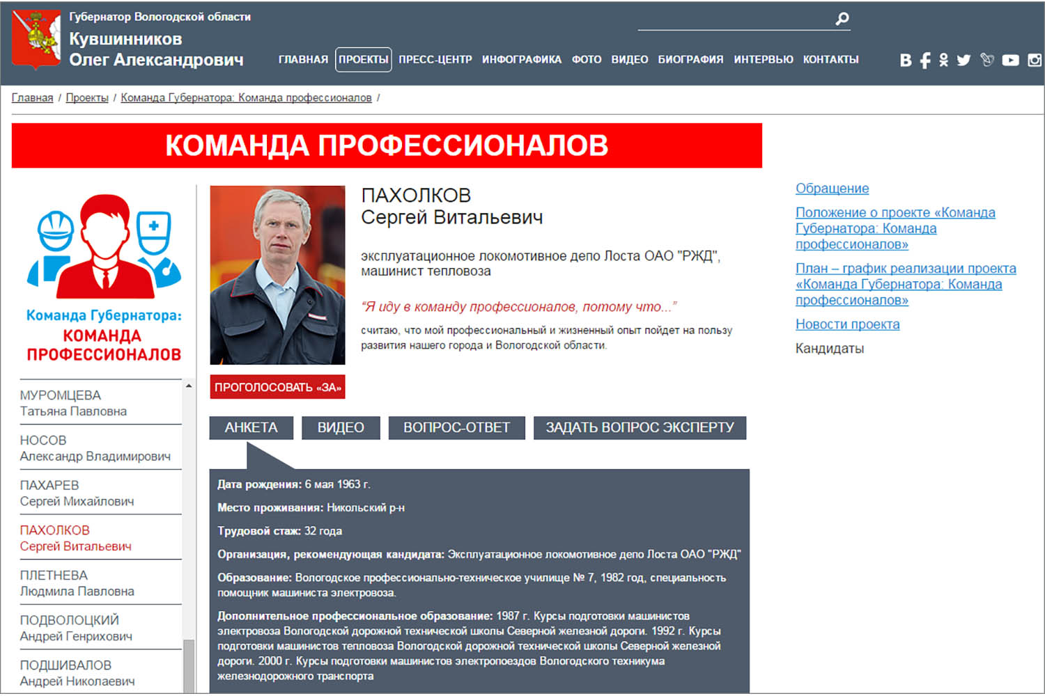 Команда губернатора вологодской