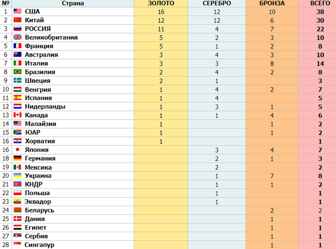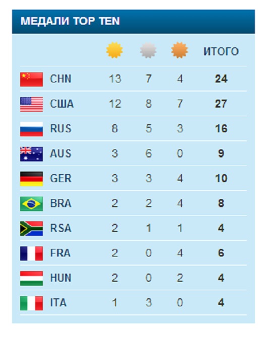 Командный зачет медалей 105 фото