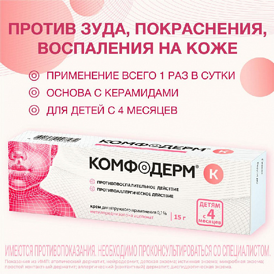 Стоимость от 149 рублей . Комфодерм . Синтетический гормональный препарат эффективен при кожных высыпаниях . Крем легкой текстуры не имеет запаха .