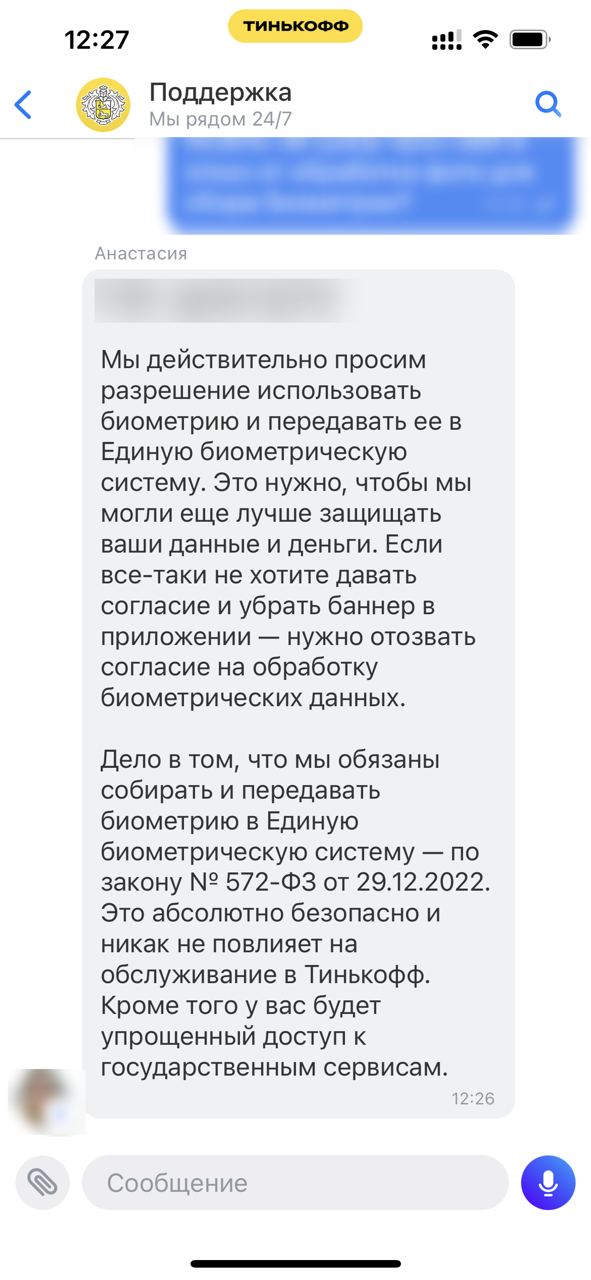 Комментарии для представителя тинькофф