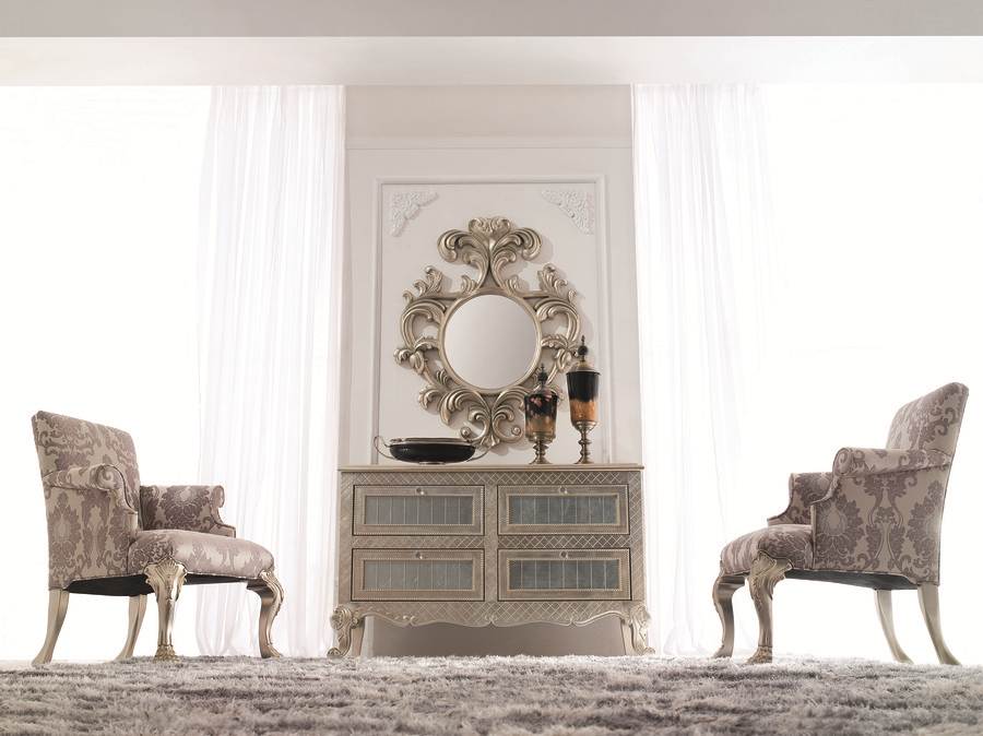 Оформление в стиле ретро похоже на предметы интерьера прошлых столетий. Оно характеризуется чаще всего золотой или бронзовой окраской