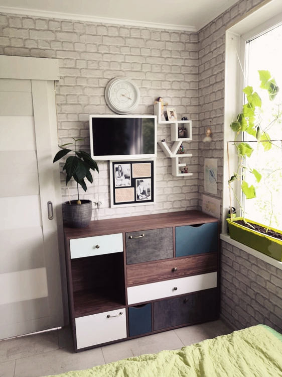 Мне нравиться, действительно вместительный комод, разный размер ящиков и дверей привлекает внимание, не похож на стандартные комоды.